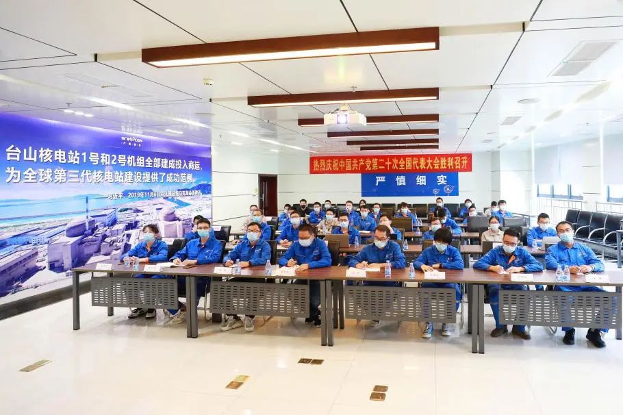 臺山核電合營有限公司黨委委員、總經(jīng)理部中方成員、紀委委員、工會委員、青聯(lián)委員、團委委員、黨委管理干部、黨支部書記、后備干部、統(tǒng)戰(zhàn)對象和員工代表等150余人參與了集中收聽收看。此外,臺山核電30個黨支部組織共計670余名黨員干部職工收看黨的二十大開幕直播。