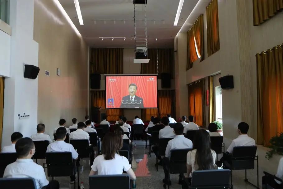中廣核陸豐核電有限公司黨委組織公司干部員工近300人,分別在廠前區(qū)辦公樓會議室、文宣中心報告廳、項目施工現(xiàn)場等地集體觀看了大會,聆聽習近平總書記重要講話。