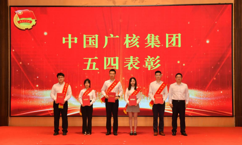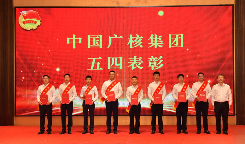 ▲核電股份公司財(cái)務(wù)總監(jiān)尹恩剛為獲得集團(tuán)五四紅旗團(tuán)委的先進(jìn)青年集體代表頒獎(jiǎng)