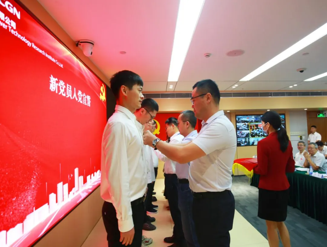 中廣核研究院有限公司舉辦慶祝中國(guó)共產(chǎn)黨成立102周年主題活動(dòng)。中廣核研究院黨委書記、總經(jīng)理舒睿講授主題教育專題黨課。會(huì)上舉行了新黨員宣誓儀式,各入黨介紹人為新黨員鄭重佩戴黨員徽章,并贈(zèng)送《中國(guó)共產(chǎn)黨章程》,7名新黨員整齊列隊(duì),面向黨旗莊嚴(yán)宣誓,全體與會(huì)黨員一起重溫入黨誓詞。