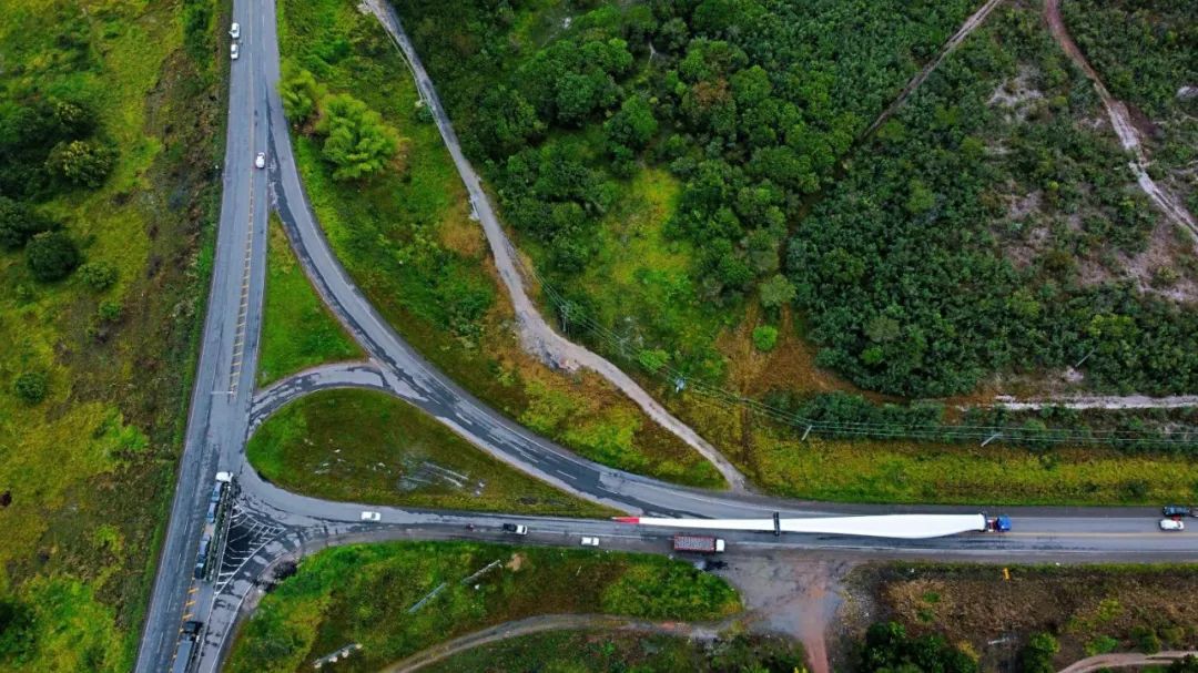 陳少陽抵達巴西不到一個月,就迅速投入工作,和巴方同事一起開始了港口到項目現(xiàn)場的風(fēng)機設(shè)備押運旅途。500多個車次的大件設(shè)備,光是風(fēng)葉就有120支,這是整個南美最長的風(fēng)葉,每支葉片長達76.3米,立起來相當(dāng)于25層樓那么高,是目前南美洲最長的葉片。這些“大家伙”來自中國,歷經(jīng)39天海上漂泊來到巴西Enseada港口,然后還要長途跋涉981公里的崎嶇路程,才能抵達山間的TN項目現(xiàn)場“安家”。