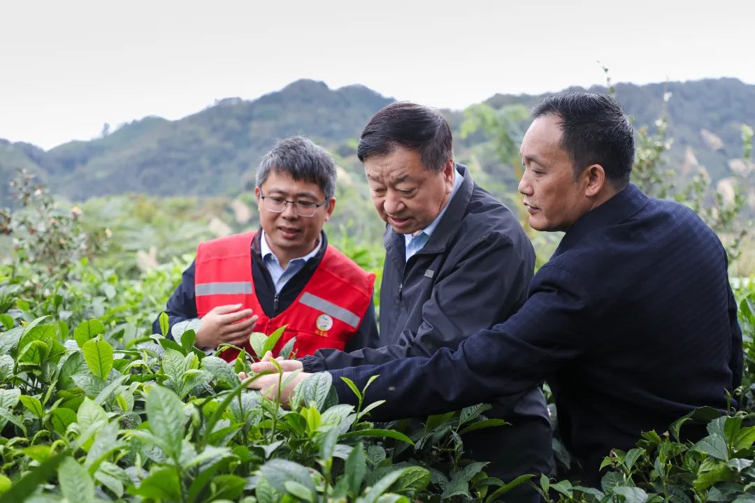 ▲楊長(zhǎng)利實(shí)地查看隴槐村茶葉種植情況