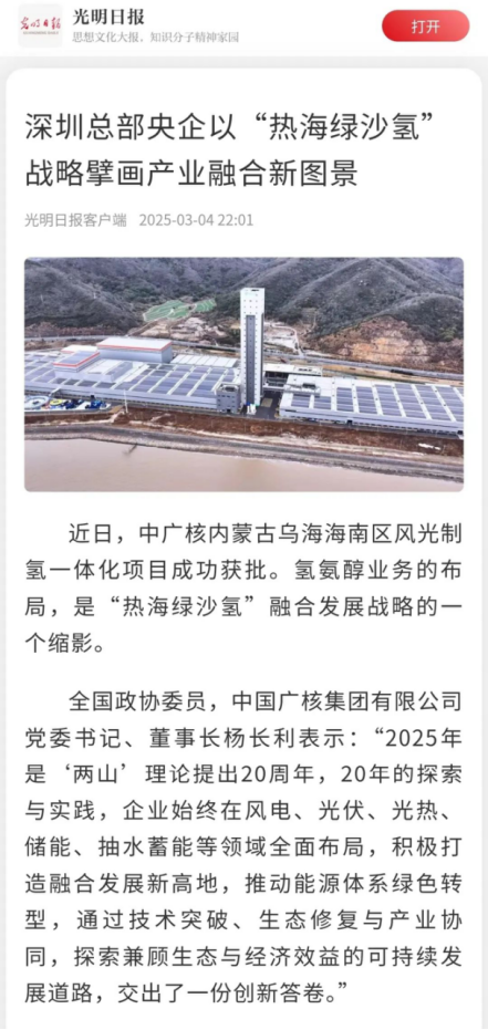 《人民日?qǐng)?bào)》:中廣核正在風(fēng)電、光伏、光熱、氫能等領(lǐng)域全面布局,以“熱海綠沙氫”戰(zhàn)略擘畫(huà)產(chǎn)業(yè)融合新圖景,通過(guò)技術(shù)突破、生態(tài)修復(fù)與產(chǎn)業(yè)協(xié)同,探索出一條兼顧生態(tài)與經(jīng)濟(jì)效益的可持續(xù)發(fā)展道路。