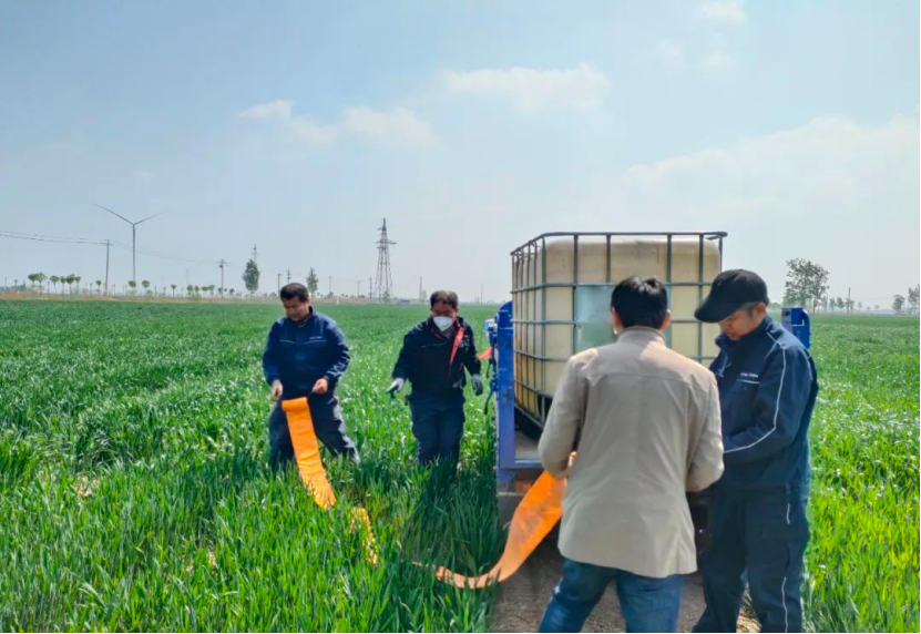 ▲沼液灌溉小麥