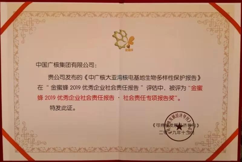 同時,中廣核于今年8月發(fā)布的《大亞灣核電基地生物多樣性保護報告》,還獲得“社會責任專項報告獎”。據(jù)悉,這是能源行業(yè)發(fā)布的首份生物多樣性保護報告,報告生動翔實地披露了大亞灣核電基地在環(huán)境監(jiān)測、生物和棲息地保護、環(huán)保教育、信息公開等方面的責任行動,傳遞了中廣核“善用自然的能量”的品牌主張,有態(tài)度、有成果、有情懷,是中國生物多樣性信息披露的優(yōu)秀代表。