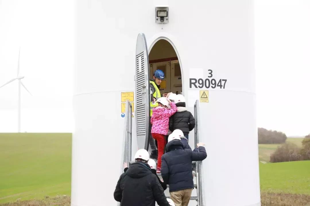 帶著這些問題,在經(jīng)過安全培訓(xùn)后,孩子們來到了風場進行實地探索。他們身穿安全背心和安全帽進入了風機內(nèi)部,探索這些龐然大物的內(nèi)部秘密。夏爾蒙風場屬于歐洲典型特點的分布式風電項目,該風場現(xiàn)運行風機6臺,輪轂高度81米,葉尖高度127米,裝機容量12兆瓦,于2010年5月投運,可為5500戶家庭供電。