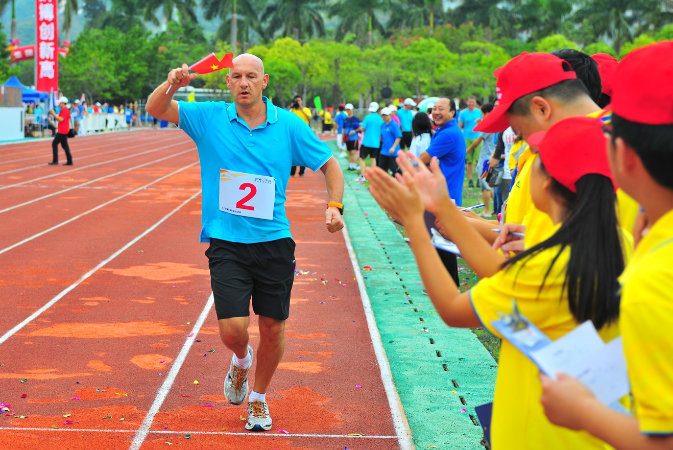 2012.10.29集團(tuán)第四次運(yùn)動(dòng)會(huì)上,臺(tái)山公司法方運(yùn)動(dòng)員拿著小國(guó)旗跑完最后的賽程...