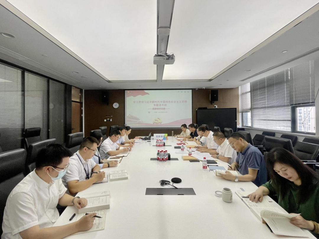 ▲中廣核技下屬高新核材公司黨委在讀書班上,結合公司生產經營中的重難點問題作交流研討